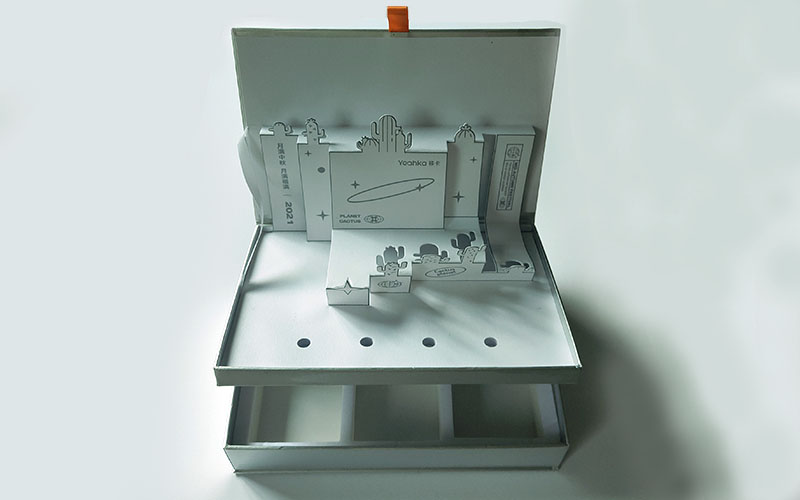 今年博霖就接到一款造型奇特的月餅盒,最初拿到客戶設計稿時還是一頭霧水。月餅盒定制最主要的兩個内容就是結構跟内容兩部分,由於客戶對於結構完全不瞭解,全憑自己想象做的。做爲專業的包裝盒定制廠家業務員,在看到客戶設計後也是很迷糊,再跟客戶耐心的溝通瞭解其需求後主動爲其提供結構的設計。盒型主要分爲兩層,一層爲勳章展示層、一層爲月餅禮品放置層。其中勳章層還有立體賀卡,並且客戶要求兩層都會翻蓋的形式。爲此特意設計瞭上下兩層均爲翻蓋的雙層盒,将第一層盒子固定到皮殼上 ,使第一層做爲第二層的蓋第一層又有單獨的蓋。這樣就完美解決瞭所有問題,既是雙層盒又是雙層翻蓋盒。