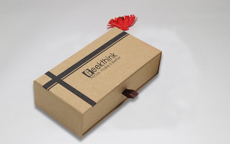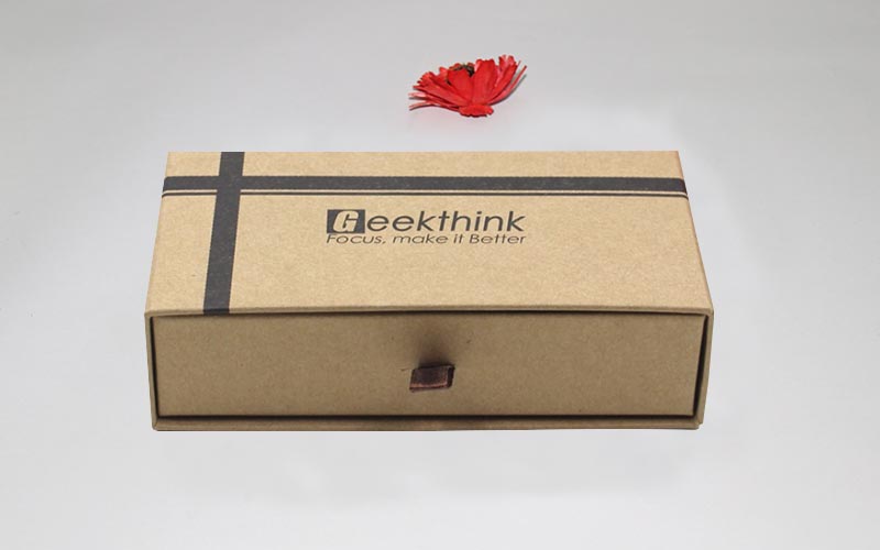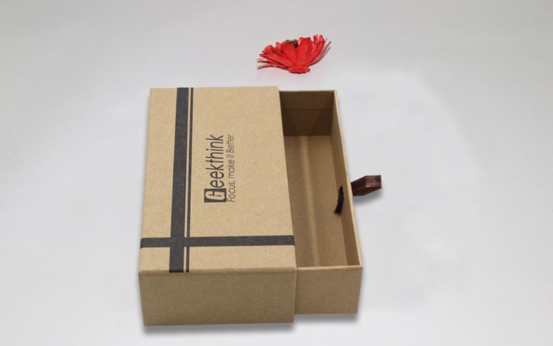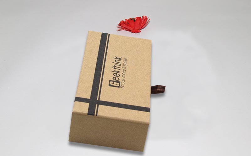 1.材質:棕色牛皮紙單面單色印刷,裱1200G雙灰闆,内抽盒也用一樣的材質,粘一抽拉的絲帶,整款盒子材質工藝一樣機械化制作。