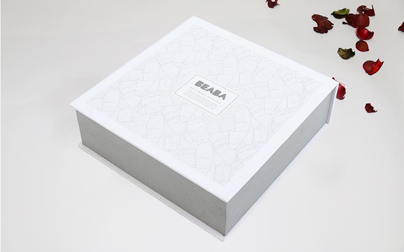1.材質:盒子的面紙白色特種紙,單色印刷盒子表面的紋理壓紋LOGO擊凸,裱1500G雙灰闆盒子内托用珍珠棉裱淺藍色綢布,盒型爲書本盒整款盒子都是機器制作,品質和外觀還是很很精緻漂亮。